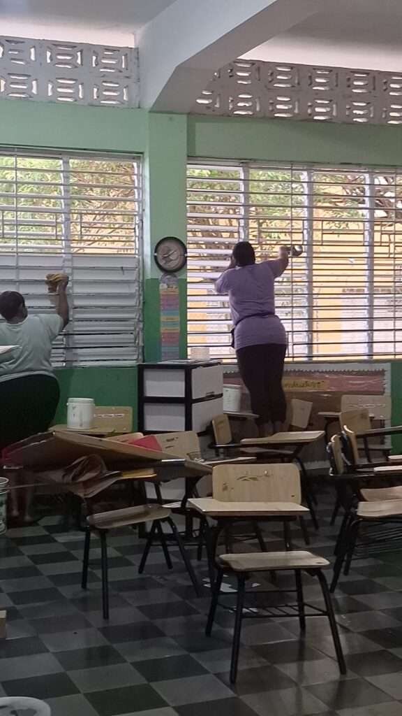 Este lunes, a pesar de ser feriado por la celebración del Día de los Santos Reyes, se observó personal obrero realizando labores de limpieza y acondicionamiento en varios planteles educativos, como parte de los preparativos finales.