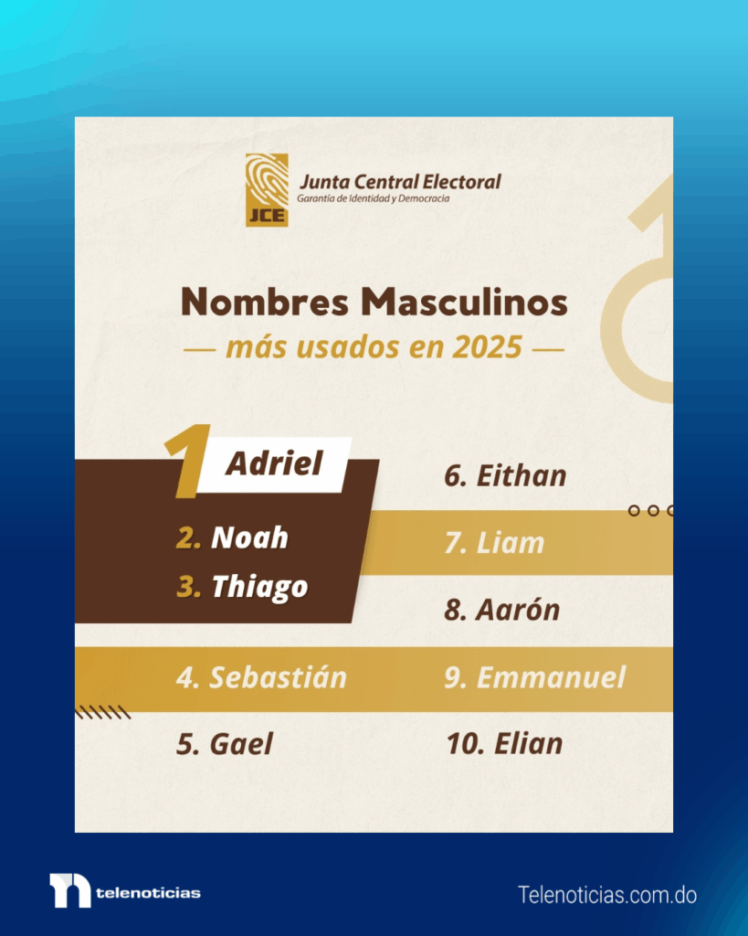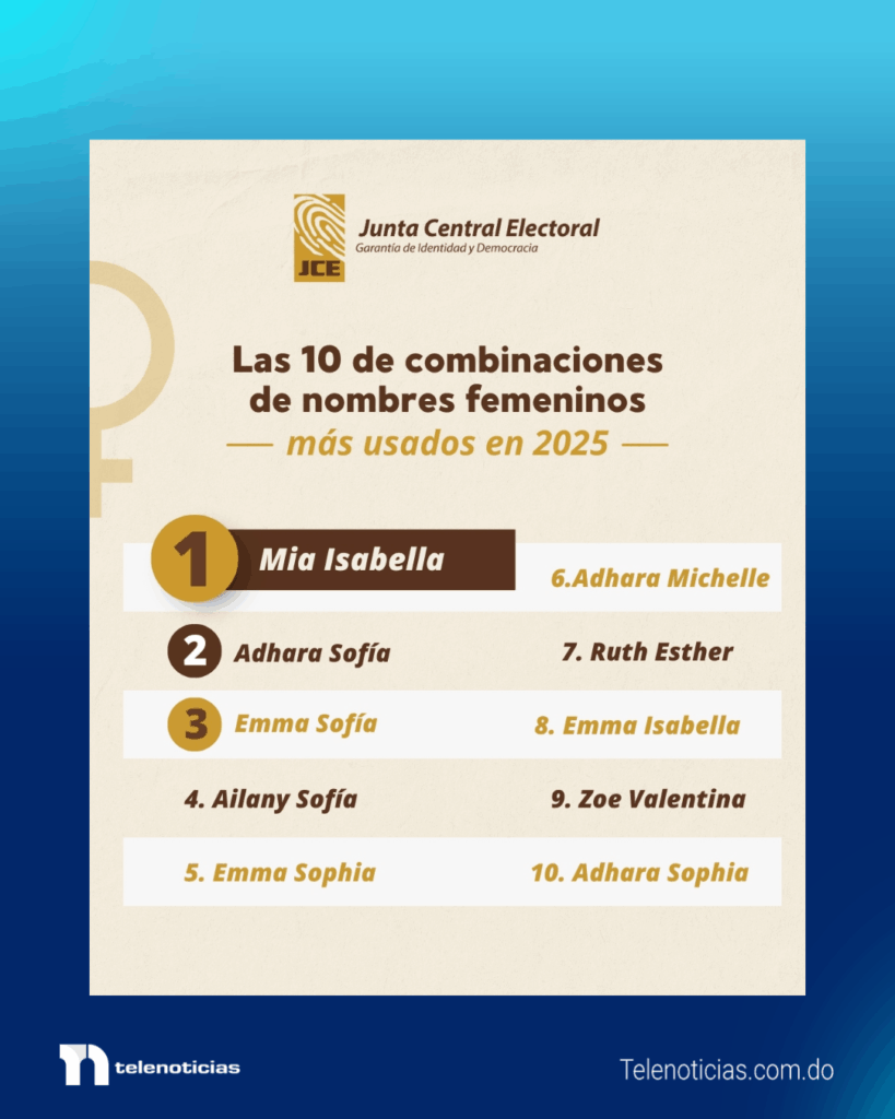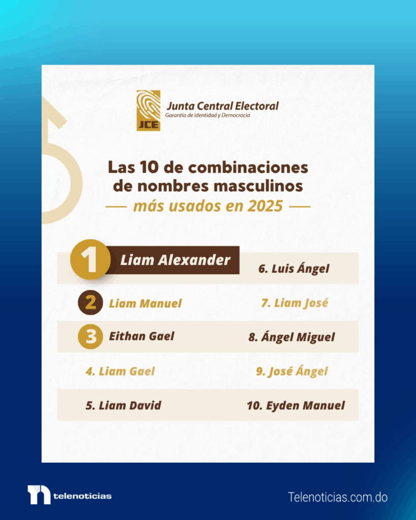 Las preferencias de las familias dominicanas al momento de registrar a sus hijos quedaron reflejadas en la más reciente publicación de la Junta Central Electoral (JCE), que dio a conocer la lista de los nombres más utilizados en los registros de nacimientos correspondientes al año 2025.