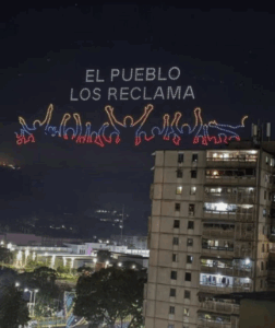 Realizan espectáculo con drones en Venezuela para exigir la libertad del presidente Maduro y Cilia Flores