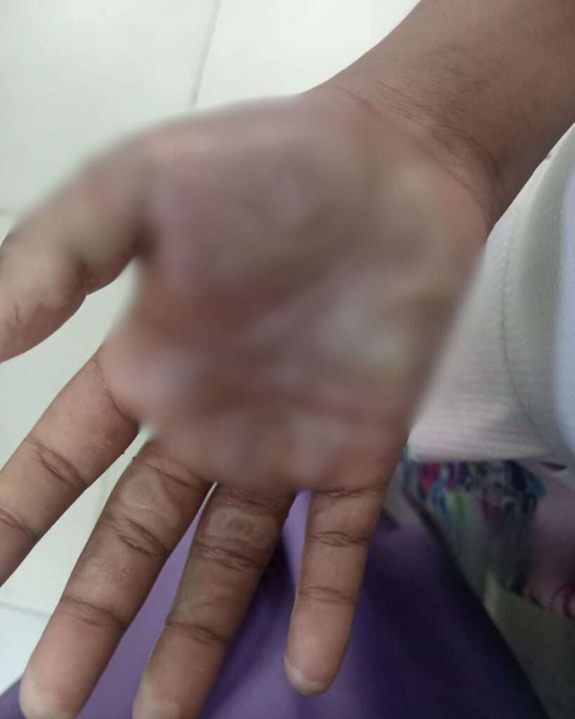 Residentes de una comunidad denunciaron un presunto caso de maltrato infantil, en el que una infante resultó con quemaduras en una de sus manos y permanece ingresada en un centro de salud, bajo observación médica.